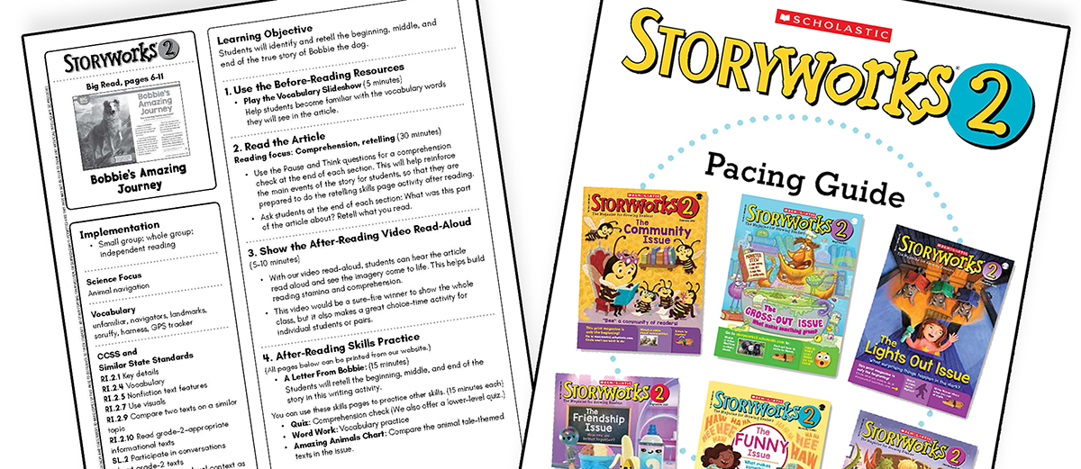 Together, the Pacing Guide and the Step-by-Step Lesson Plans that come with every issue are your go-to companions for teaching Storyworks 2 with ease and joy!