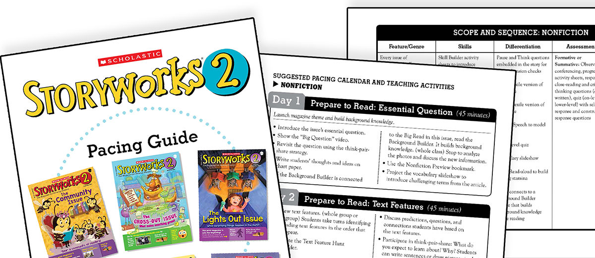 Our Pacing Guide will help you plan your year with Storyworks 2, a resource that includes a dazzling classroom magazine and an incredible package of support materials. You’ll discover how Storyworks 2 can fit into your teaching calendar as you map out the year and break out your plans day by day.